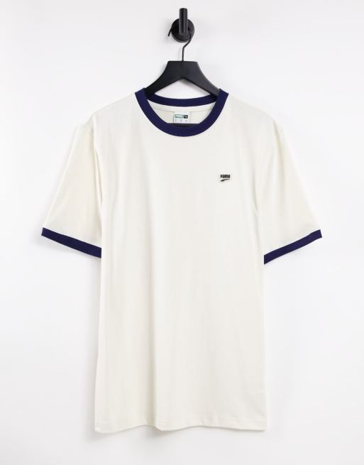 Puma - Downtown - T-shirt avec liserés et petit logo - Blanc cassé