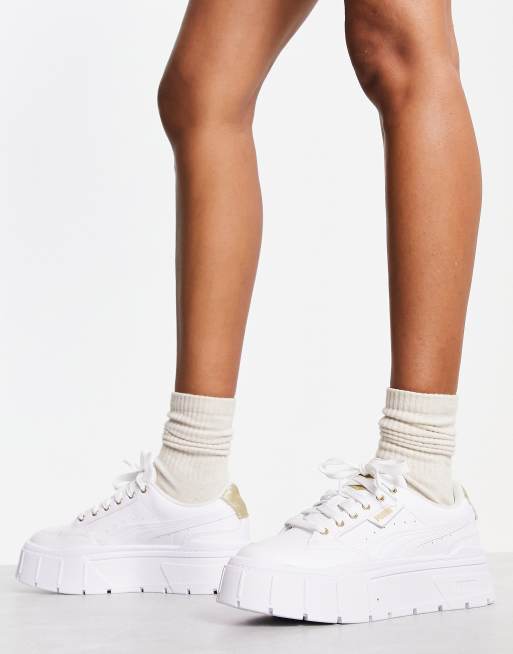 PUMA - Mayze - Baskets à semelle rainurée - Blanc et doré