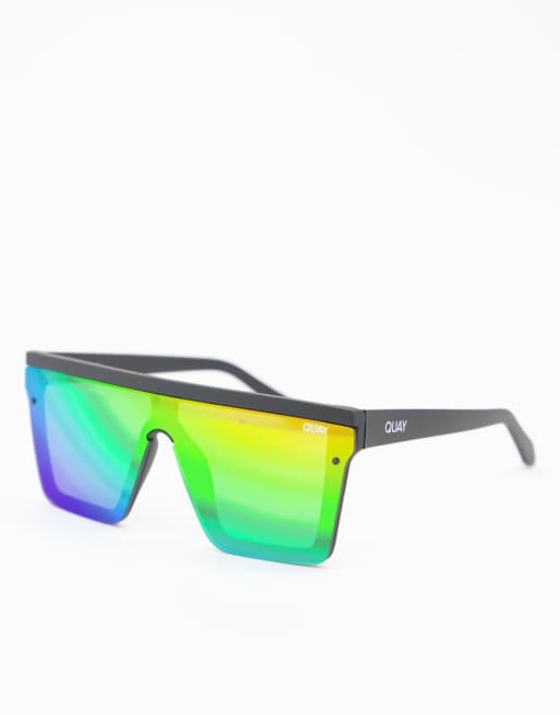 Quay - Pride Hindsight - Lunettes de soleil unisexes à barre supérieure plate et verres arc-en-ciel - Noir mat