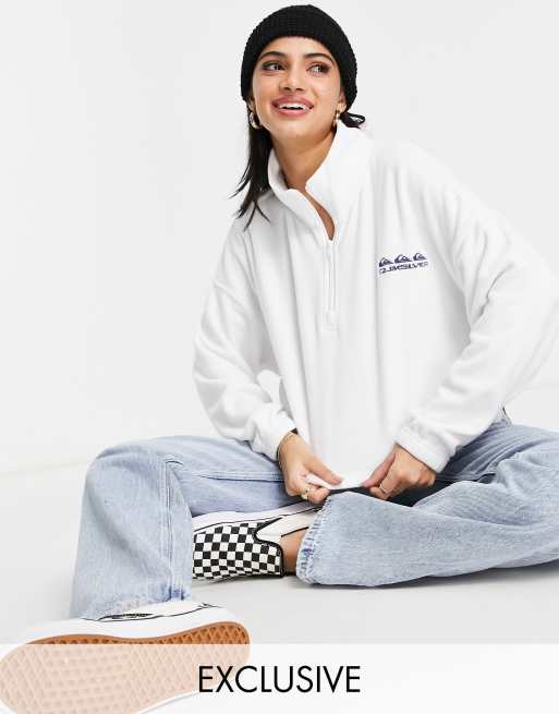 Quiksilver - Polaire courte à fermeture éclair partielle et logo - Blanc - Exclusivité ASOS