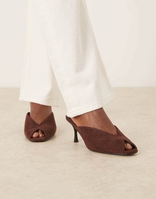 RAID - Sonika - Mules à petit talon en imitation suédine - Marron