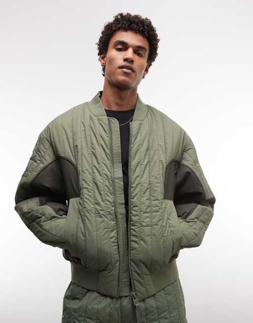 Rains - 20930 Koya - Bomber d'ensemble matelassé déperlant à motif ton sur ton - Vert