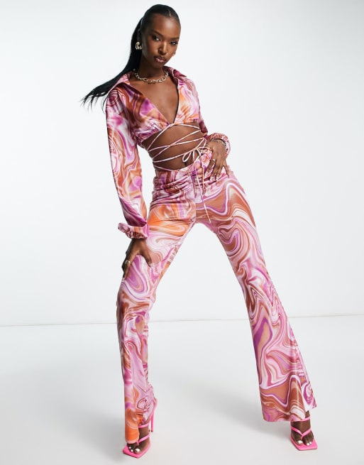 Rare London - Ensemble en satin à imprimé tourbillon - Rose