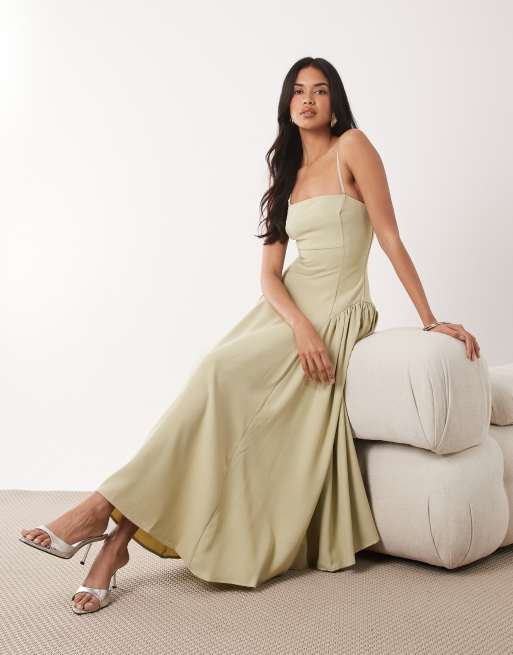 Rare London - Robe bustier mi-longue à taille cintrée - Olive