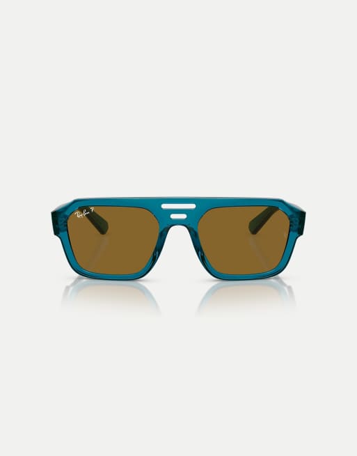 Ray-Ban - Corrigan - Lunettes de soleil polarisées irrégulières avec verres marron - Bleu clair transparent