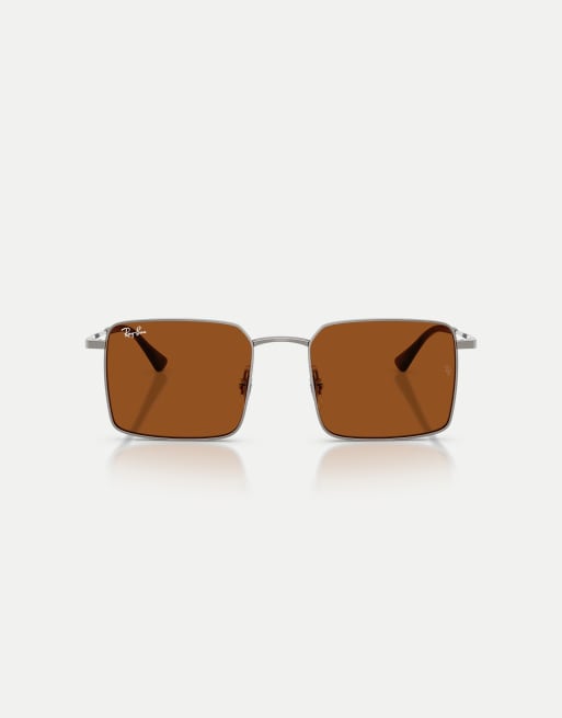 Ray-Ban - Idan - Lunettes de soleil carrées à verres marron - Gris acier
