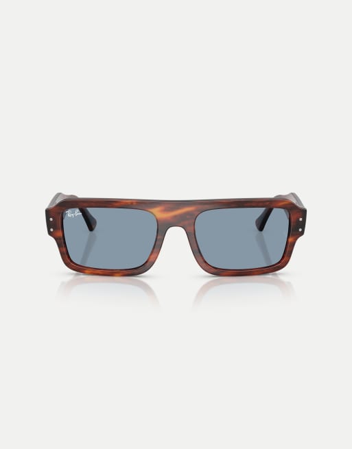 Ray-Ban - Lukas - Lunettes de soleil rectangulaires à verres bleus - Havane à rayures