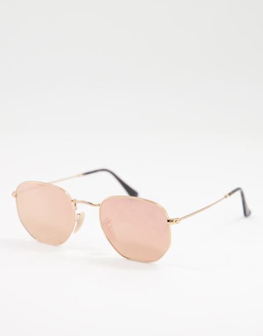 Ray-Ban - Lunettes de soleil hexagonales avec verres roses - Doré