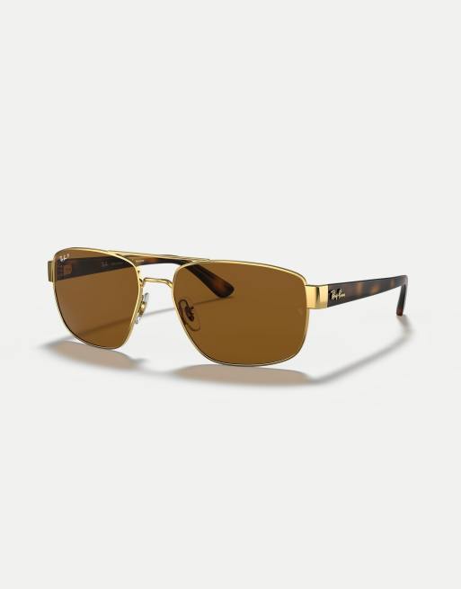 Ray-Ban - Lunettes de soleil irrégulières à verres polarisés marron - Doré