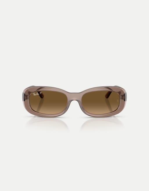 Ray-Ban - Lunettes de soleil ovales à verres marron et monture transparente - Beige