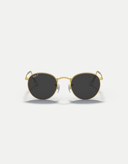 Ray-Ban - Lunettes de soleil rondes en métal avec verres noirs polarisés - Doré