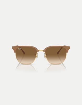 Ray-Ban - New Clubmaster - Lunettes de soleil avec verres marron - Beige et doré