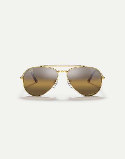 Ray-Ban - New - Lunettes de soleil aviateur à verres miroir marron - Doré