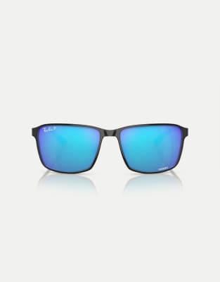 Ray-Ban - Rb3721ch Chromance - Lunettes de soleil carrées avec verres bleus miroir polarisés - Noir et argenté
