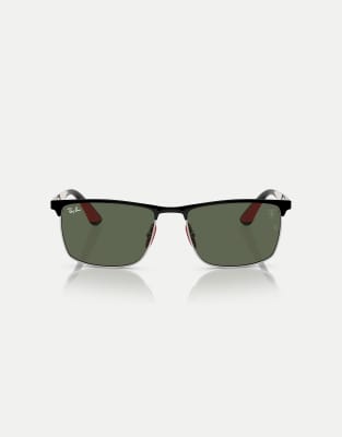 Ray-Ban - Rb3726m - Scuderia Ferrari Collection - Lunettes de soleil rectangulaires à verres verts - Noir sur argent