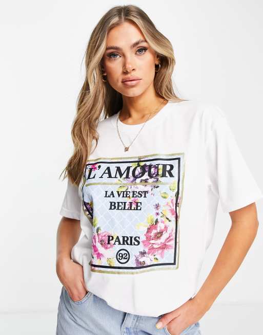 Rebellious Fashion - T-shirt à motif et inscription « L'amour » - Blanc
