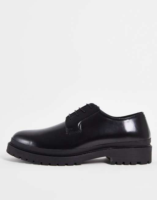 Red Tape - Chaussures chunky à lacets en cuir ultra brillant - Noir