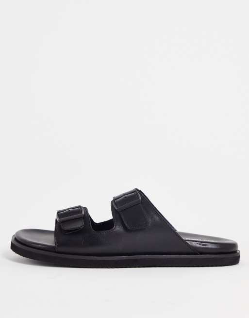 Red Tape - Sandales style mules en cuir à double boucle - Noir