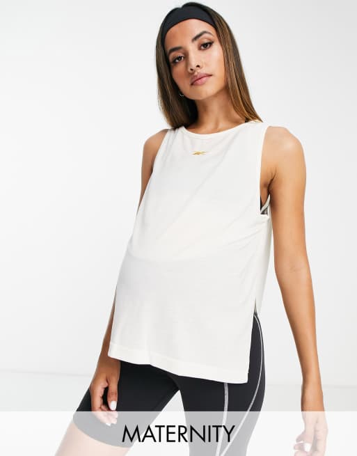 Reebok - Débardeur de sport de grossesse à logo - Blanc