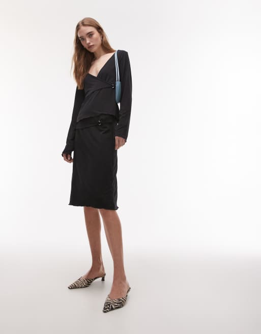 Resume - Jupe longueur mollet d'ensemble près du corps à taille basse en jersey - Noir