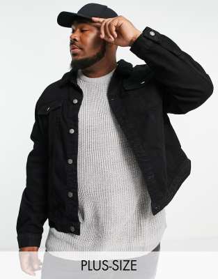 River Island - Big & Tall - Veste en jean avec col imitation peau de mouton - Noir