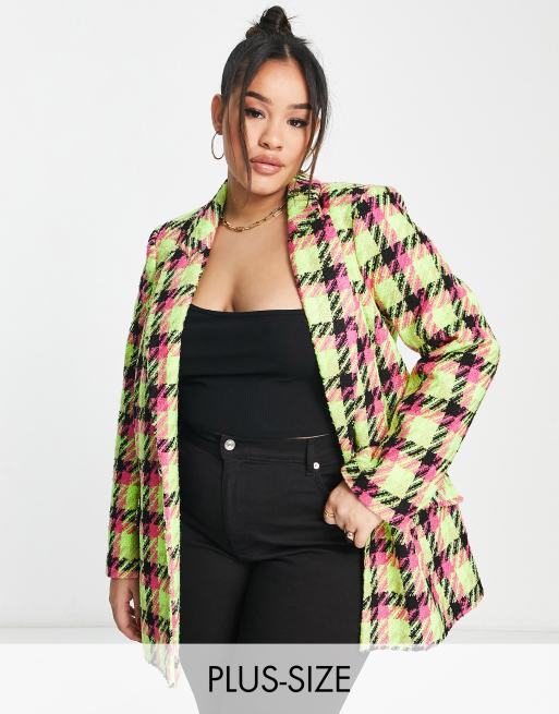River Island Plus - Blazer d'ensemble en tissu bouclé à carreaux - Citron vert