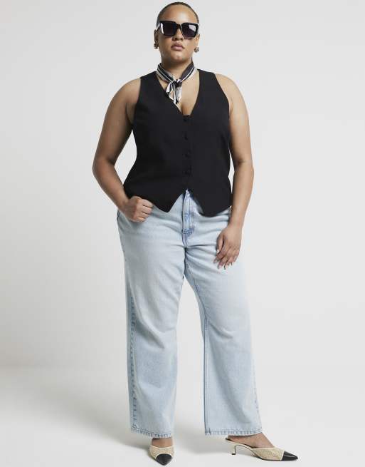 River Island Plus - Gilet de costume boutonné devant - Noir