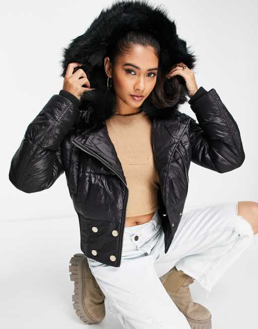 River Island - Bomber matelassé court avec doublure en fausse fourrure