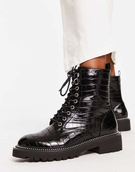 River Island - Bottines à lacets effet croco - Noir