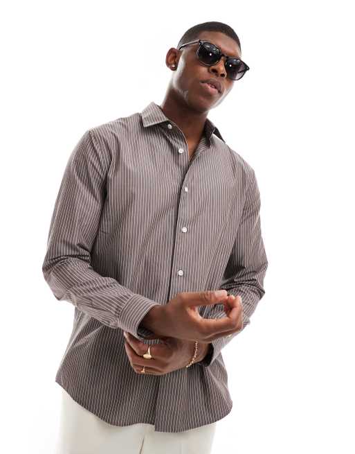 River Island - Chemise rayée en popeline - Marron
