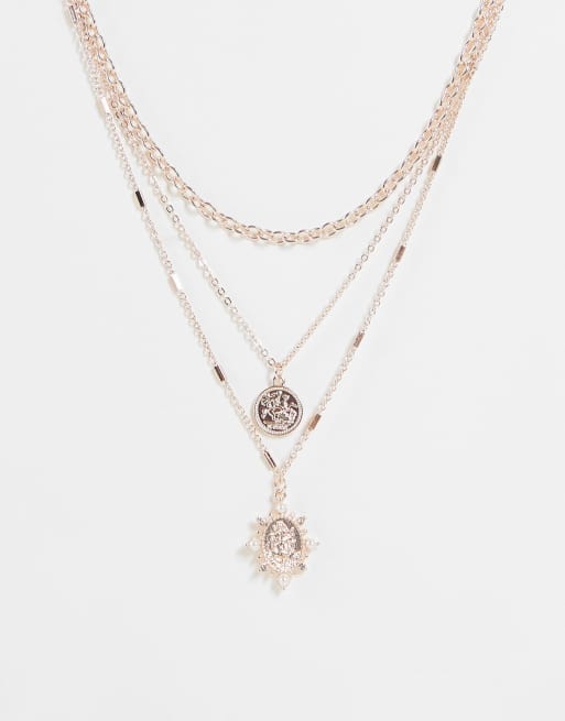 River Island - Collier multi-rangs avec pièces de monnaie - Or rose