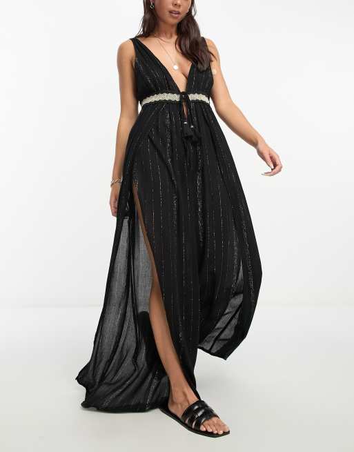 River Island - Combinaison de plage ample à décolleté plongeant - Noir