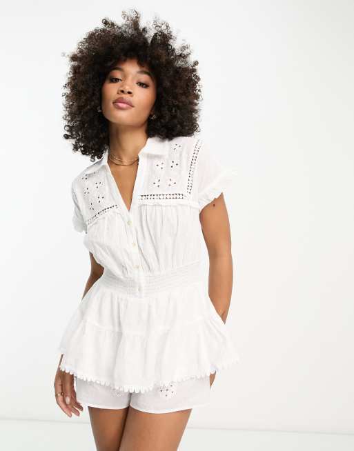 River Island - Combishort de plage avec broderie anglaise - Blanc