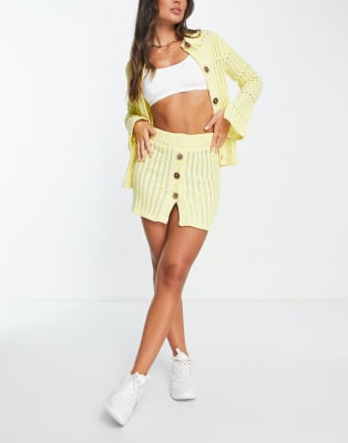 River Island - Ensemble avec gilet et mini-jupe en maille crochet à point d'échelle