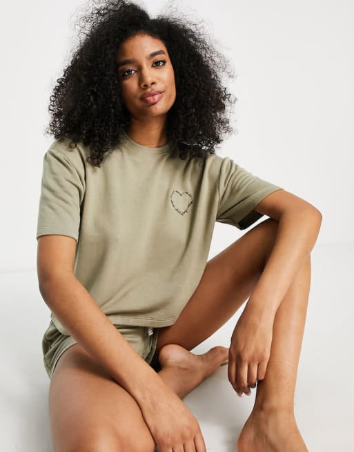 River Island - Ensemble confort avec t-shirt et short - Kaki