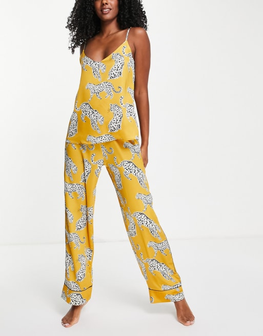 River Island - Ensemble de pyjama avec caraco et pantalon à imprimé léopard - Orange