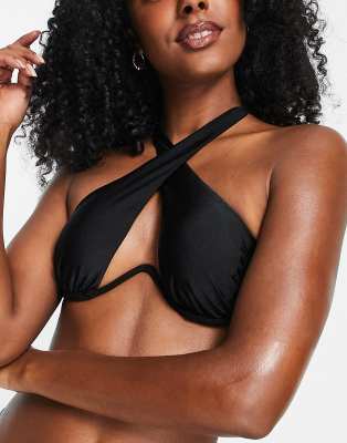 River Island - Haut de bikini cache-cœur dos nu à armatures - Noir