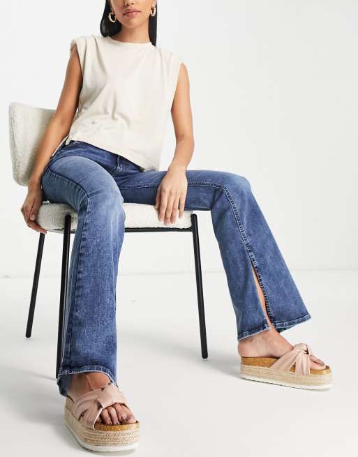 River Island - Jean évasé à taille mi-haute fendu sur les côtés - Bleu moyen