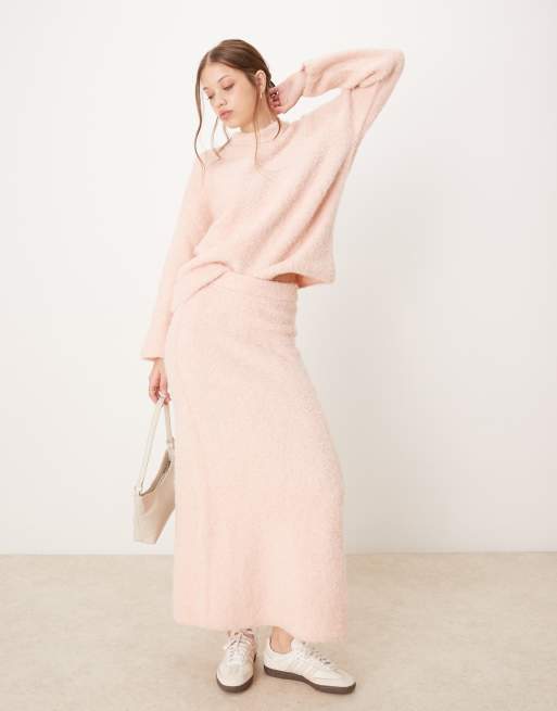 River Island - Jupe longue d'ensemble en maille ultra duveteuse - Rose clair