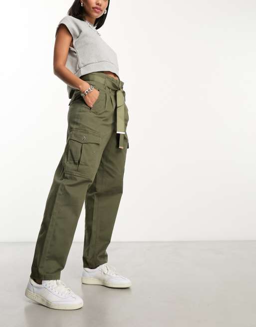 River Island - Pantalon cargo ceinturé à taille haute froncée - Vert