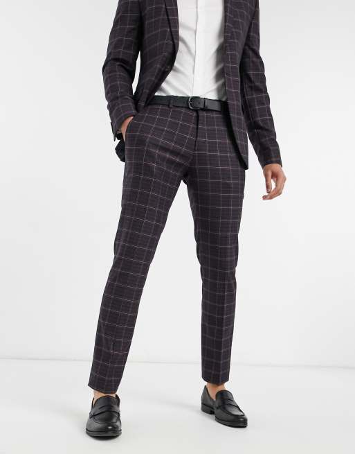 River Island - Pantalon de costume slim à carreaux - Rouge