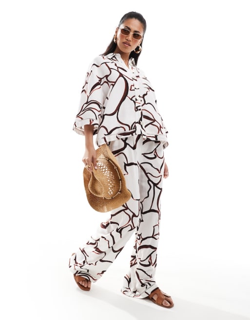 River Island - Pantalon d'ensemble à imprimé abstrait - Marron