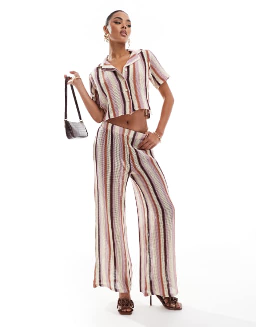 River Island - Pantalon d'ensemble ample en maille rayée - Rose moyen