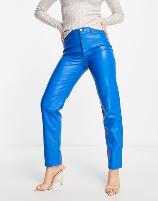 River Island - Pantalon droit en imitation cuir - Bleu vif
