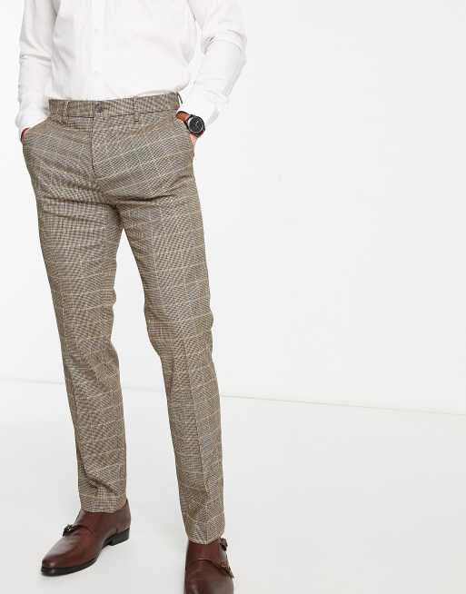 River Island - Pantalon slim habillé à carreaux traditionnels - Marron