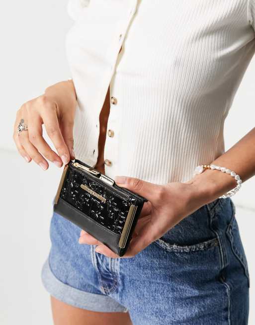 River Island - Petit porte-monnaie à monogramme gravé et fermeture éclair - Noir