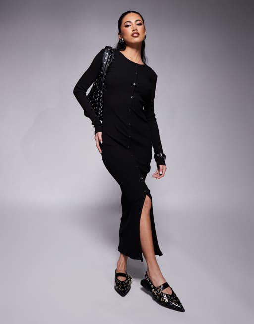 River Island - Robe mi-longue boutonnée à manches longues - Noir