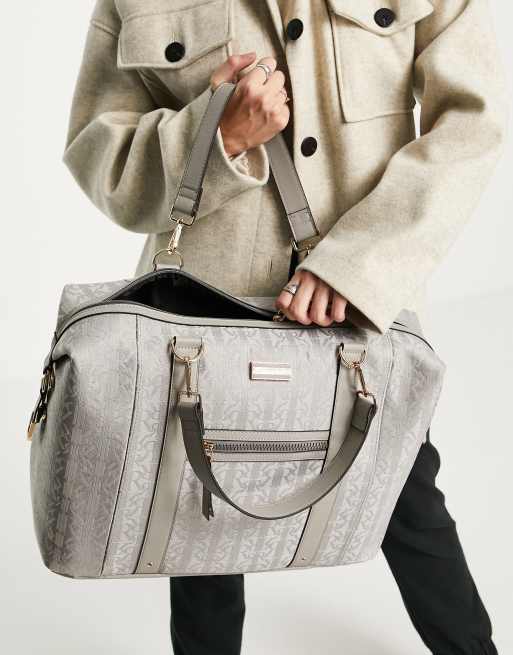 River Island - Sac week-end en jacquard à monogramme - Gris