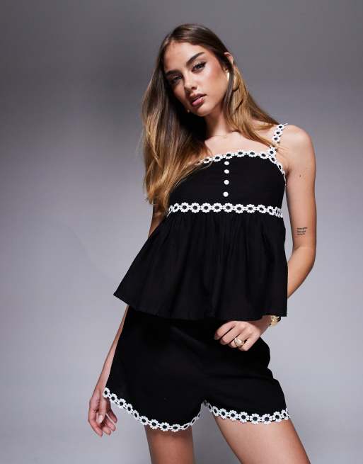 River Island - Short d'ensemble avec bords à pâquerettes - Noir