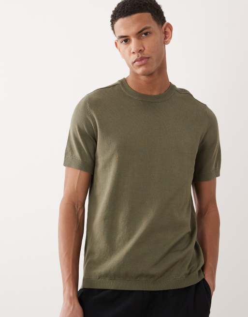 River Island - T-shirt en maille - Kaki